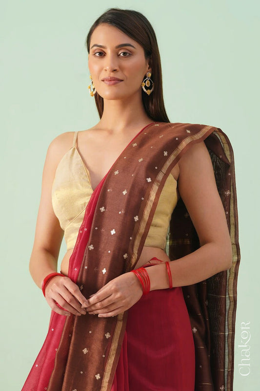 Red Brown Shaded Chanderi Silk Cotton Handloom Saree