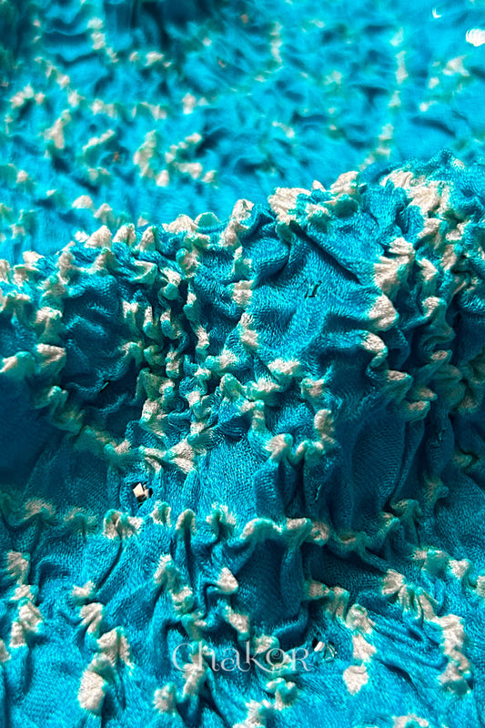 Peacock Blue Bandhani Mulberry Silk Saree