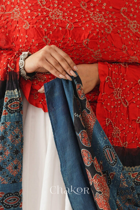Jade Red Bandhani Ajrakh Silk Dupatta
