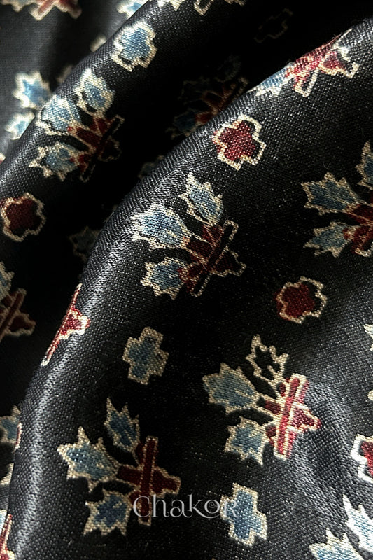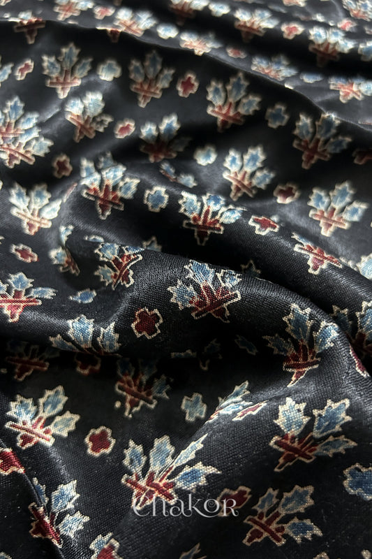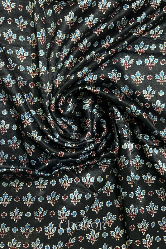 Black Ajrakh Printed Mashru Kurta Fabric - 3 mtr