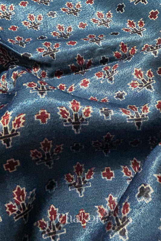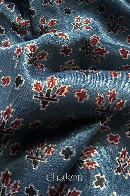Indigo Ajrakh Printed Mashru Kurta Fabric - 3 mtr