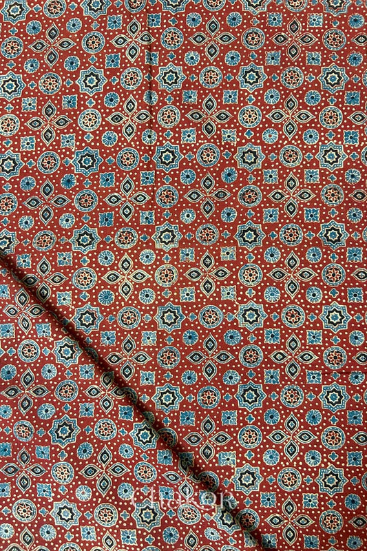 Madder Red Ajrakh Printed Cotton Kurta Fabric - 3 mtr