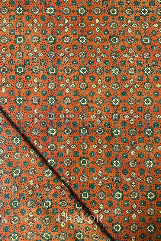 Rusty Orange Ajrakh Printed Cotton Kurta Fabric - 3 mtr