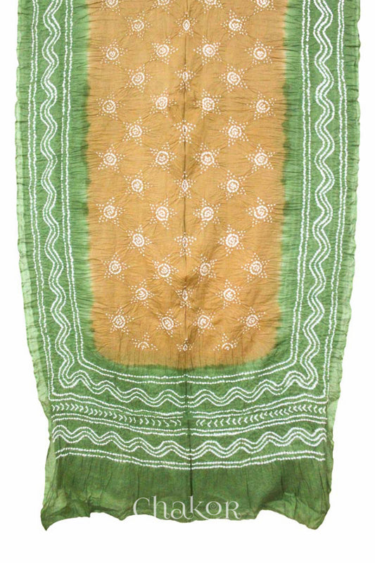 Beige Mehendi Green Bandhani Mul Cotton Saree