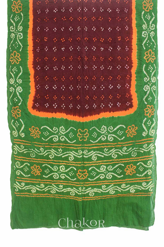Maroon Mehendi Green Bandhani Mul Cotton Saree