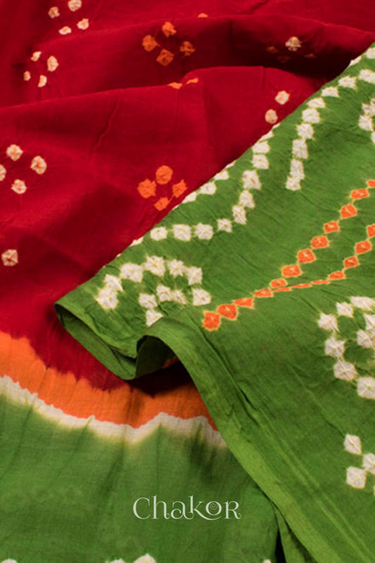 Red Mehendi Green Bandhani Mul Cotton Saree
