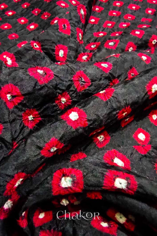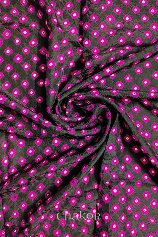 Black Bandhani Mulberry Silk Blouse Fabric