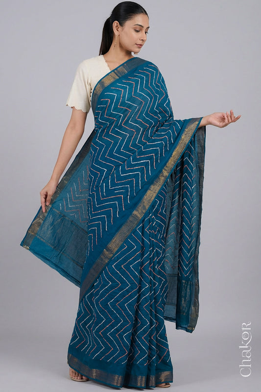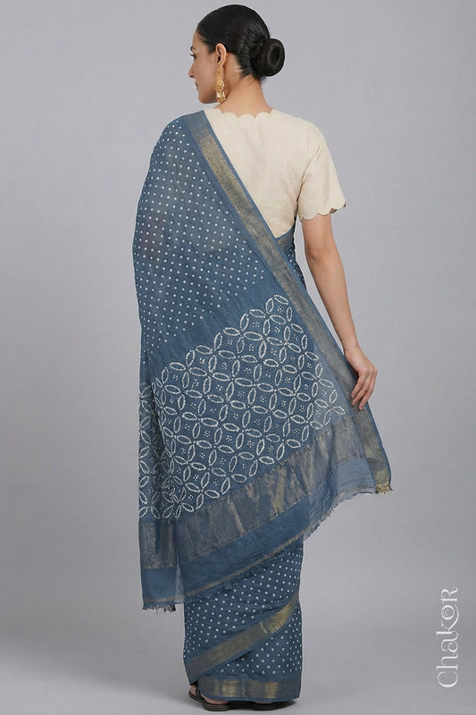 Indigo Bandhani Handloom Mangalgiri Cotton Saree