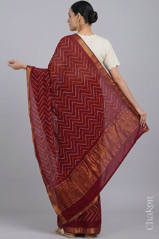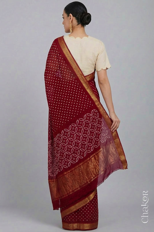 Maroon Bandhani Handloom Mangalgiri Cotton Saree