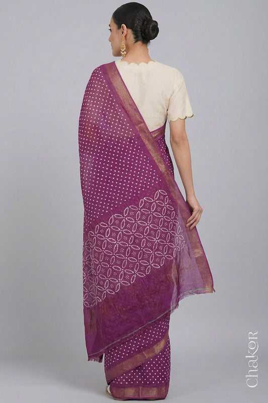 Deep Purple Bandhani Handloom Mangalgiri Cotton Saree