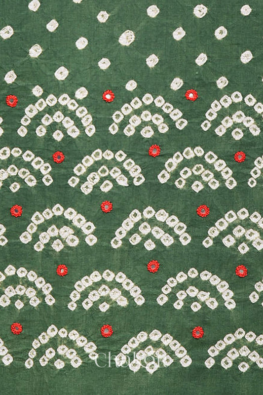 Green Bandhani Cotton Bottom Fabric