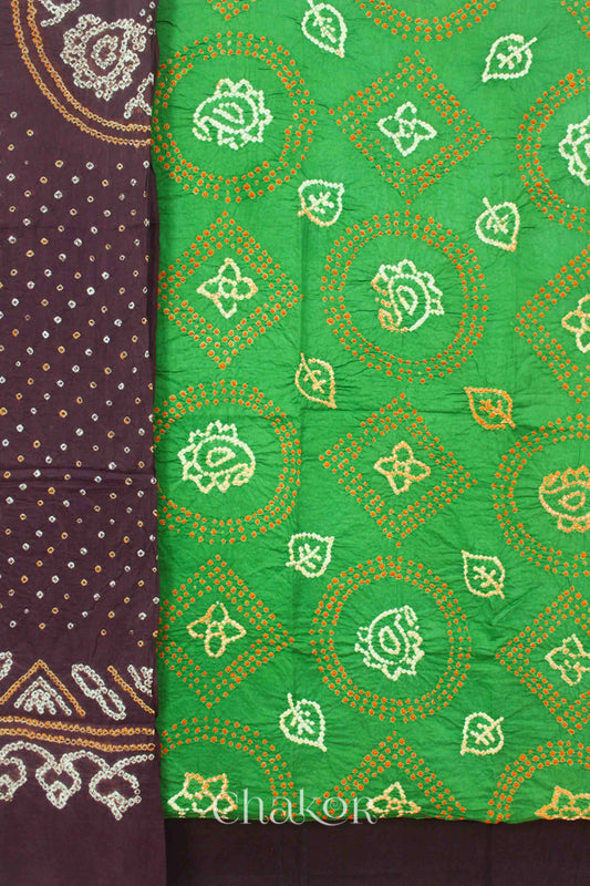 Mehendi Brown Bandhani Cotton Kurta Set Fabric With Dupatta (Set of 3)