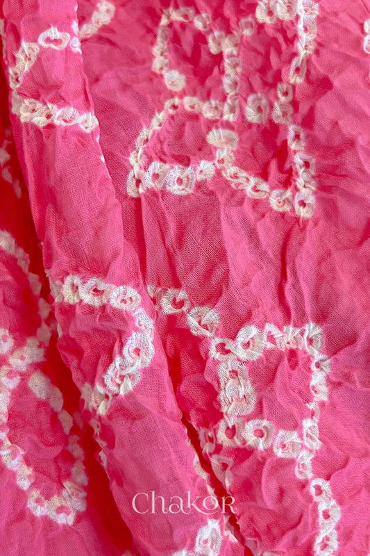The Mesmerising Bandhani Dupatta collection features handcrafted dupattas created using traditional Bandhej tie-dye techniques from Kutch, Gujarat. The range spans fine cottons and pure silks, including Mul cotton, Mangalgiri cotton, mulberry silk, Gaji silk, and Banarasi silk georgette, offering versatile styling for everyday and festive wear.