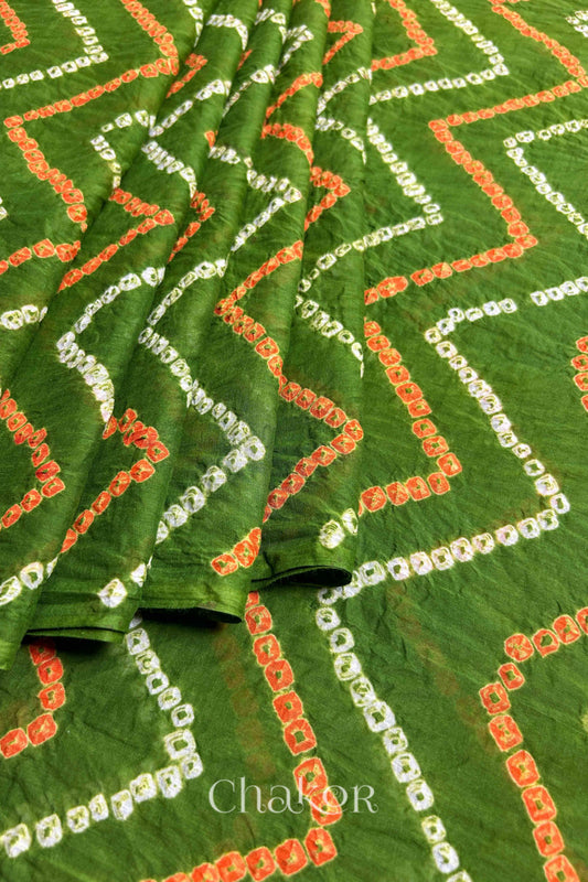 Mehendi Green Bandhani Hand Spun Cotton Handloom Saree