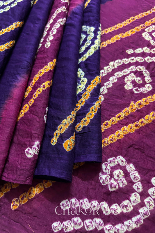 Purple Bandhani Hand Spun Cotton Handloom Saree