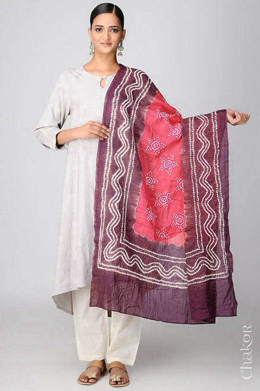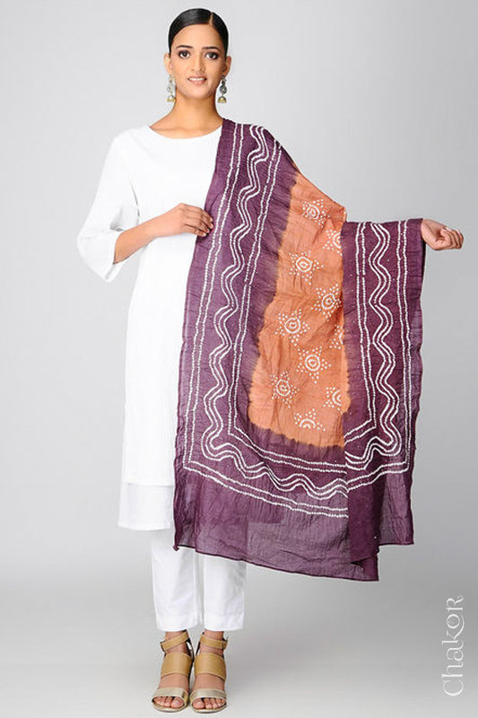 Plum Bandhani Mul Cotton Dupatta