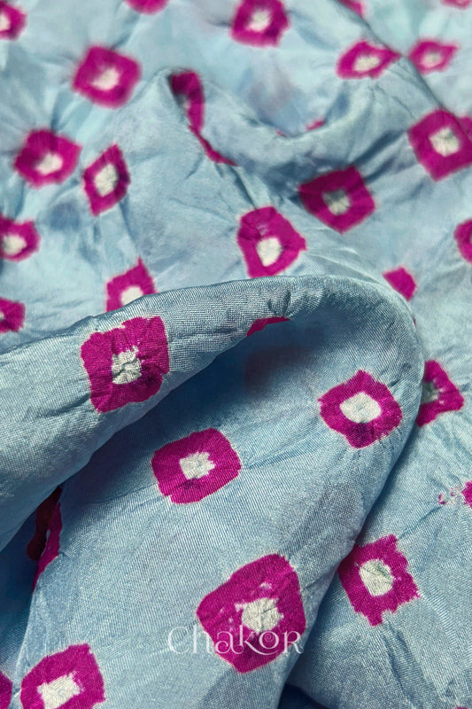 Sky Blue Bandhani Mulberry Silk Blouse Fabric