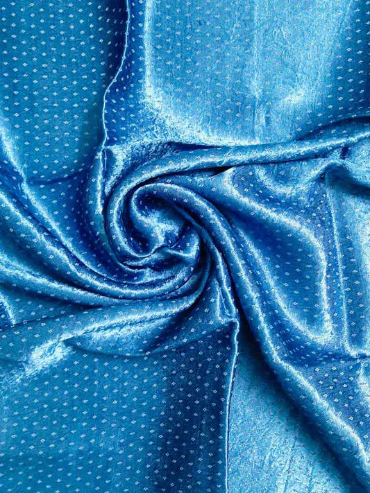 Peacock Blue Bandhani Mulberry Silk Embroidered Blouse Fabric