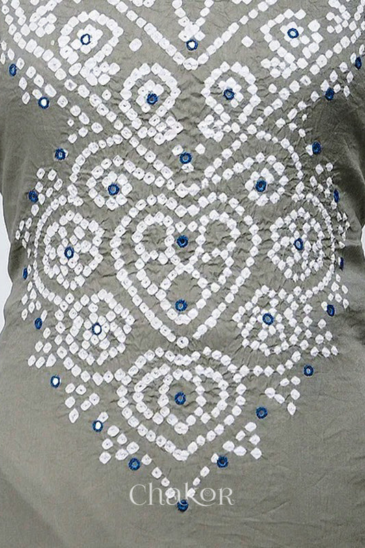 Cement Grey Indigo Bandhani Cotton Mirror Embroidered Kurta Fabric with Dupatta (Set of 3)