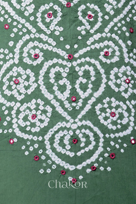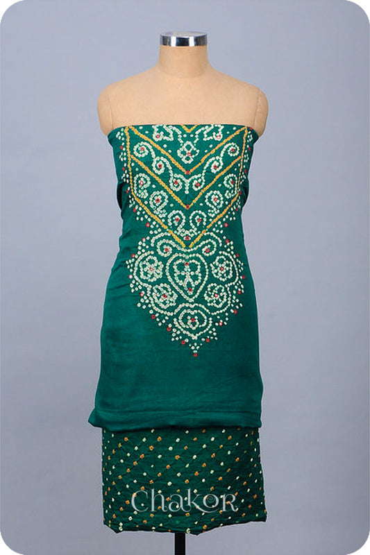 Moss Green Bandhani Cotton Mirror Embroidered Kurta Fabric with Dupatta (Set of 3)