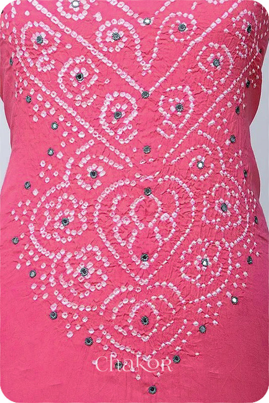 Pink Grey Bandhani Cotton Kurta Fabric With Dupatta (Set of 3)