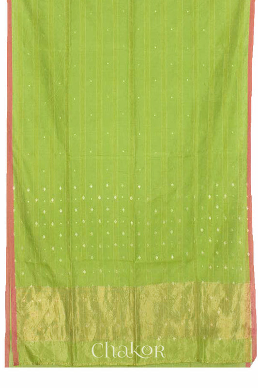 The translucent quality of Chanderi fabric is achieved through the use of fine silk & mercerised cotton threads in the warp and weft, creating a delicate and ethereal appearance. The incorporation of zari adds a touch of opulence, making Chanderi sarees a sought-after choice for special occasions.