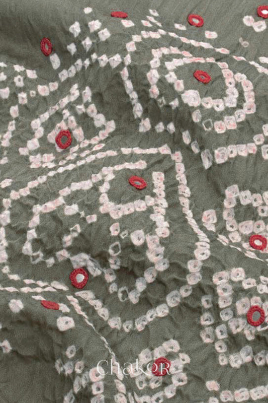 Off-white & Grey Bandhani Cotton Mirror Embroidered Kurta Fabric with Dupatta (Set of 3)
