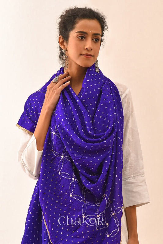 Blue Ombre Bandhani Gaji Silk Dupatta