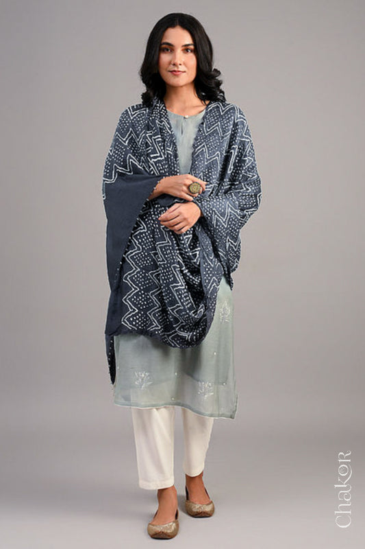 Blue Taupe Bandhani Ajrakh Silk Dupatta