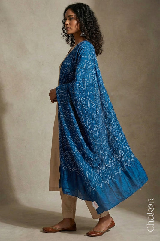 Blue Bandhani Gaji Silk Dupatta