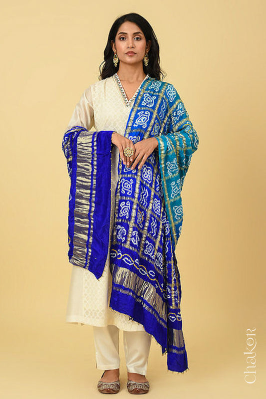 Blue Ombre Bandhani Gharchola Gaji Silk Dupatta