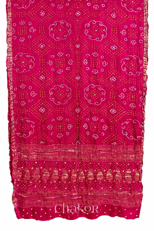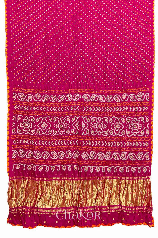 Pink Purple Bandhani Gharchola Gaji Silk Dupatta