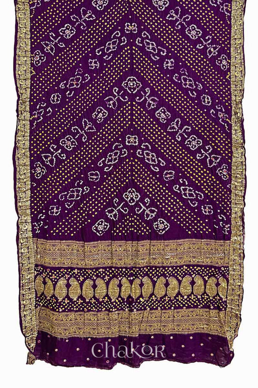Purple Bandhani Ajrakh Gaji Silk Dupatta | Handmade Bandhej from Kutch