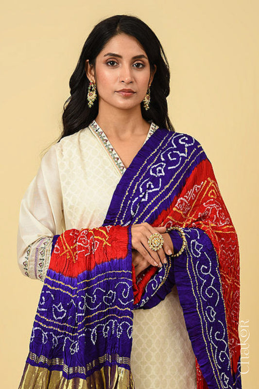 Red Indigo Bandhani Gaji Silk Saree