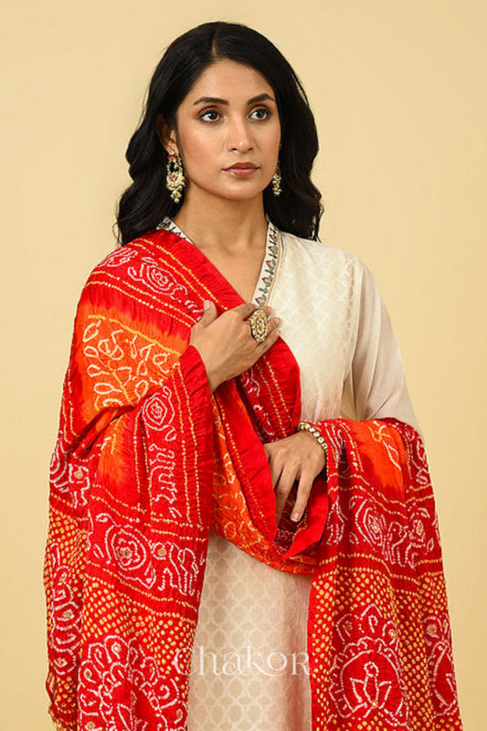 Offwhite Bandhani Gharchola Gaji Silk Dupatta