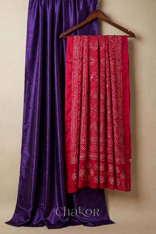 Purple Mashru Kurta Set Fabric with Bandhani Silk Dupatta