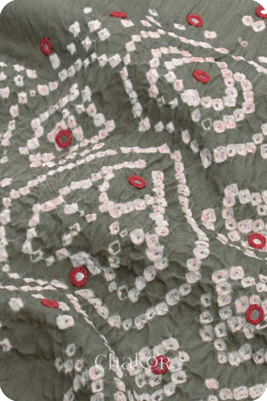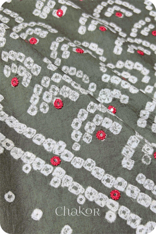 Off-white & Grey Bandhani Cotton Mirror Embroidered Kurta Fabric with Dupatta (Set of 3)