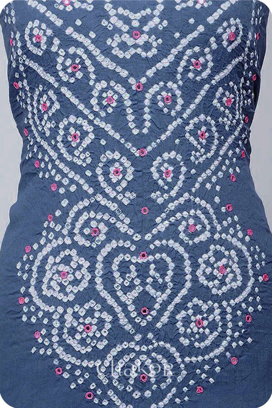 Blue Grey Bandhani Cotton Kurta Fabric With Dupatta (Set of 3)