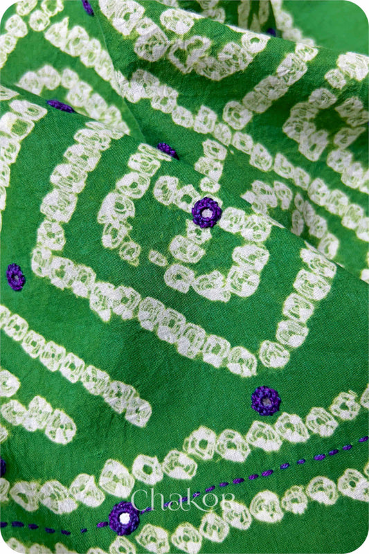 Purple Green Bandhani Cotton Kurta Set Fabric (Set of 2)