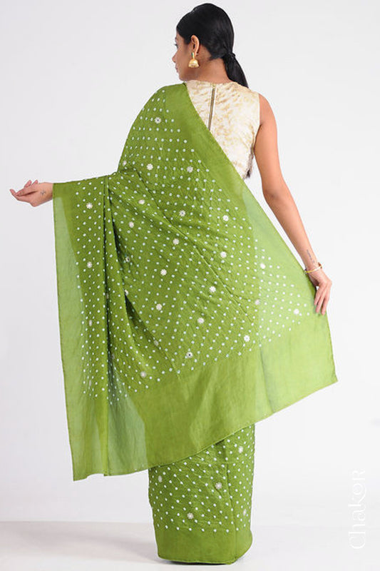 Mehendi Green Bandhani Mulberry Silk Saree