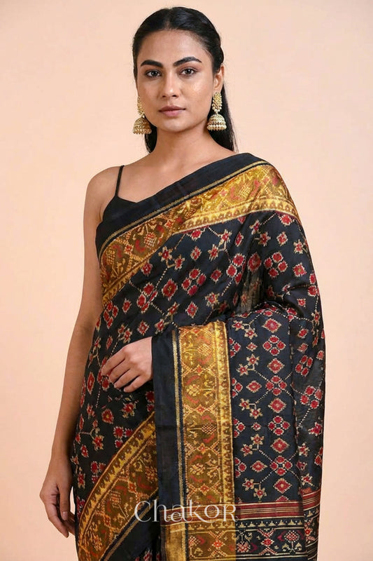 Patola, a revered handwoven textile, holds a prestigious place in the rich tapestry of Indian craftsmanship. This exquisite art form, known for its vibrant colours and intricate patterns, is deeply intertwined with the cultural heritage of Gujarat. Particularly, the cities of Patan, Rajkot & Surendranagar are renowned for their expertise in crafting Patola sarees, showcasing the meticulous Ikat weaving technique.