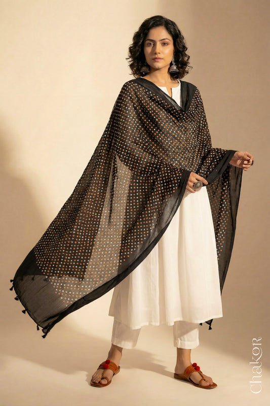 Black Mehendi Bandhani Mul Cotton Dupatta