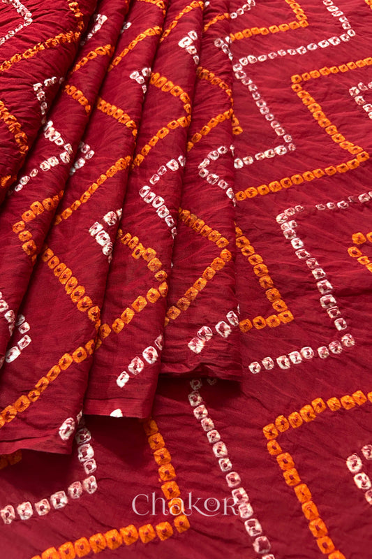 Deep Red Bandhani Handloom Mangalgiri Cotton Saree