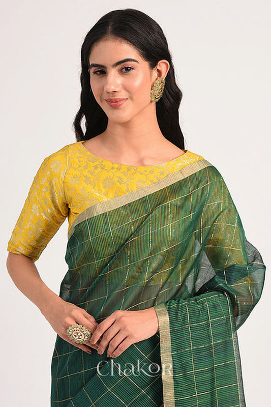Peacock Blue Chanderi Tissue Silk Cotton Handloom Saree