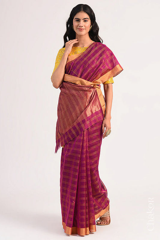Pink Plum Shaded Chanderi Silk Cotton Handloom Saree