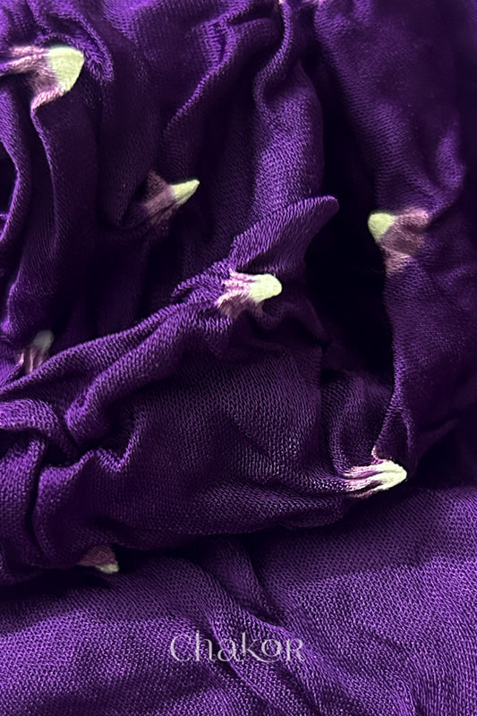 Purple Bandhani Mul Cotton Dupatta | Handmade Bandhej from Kutch