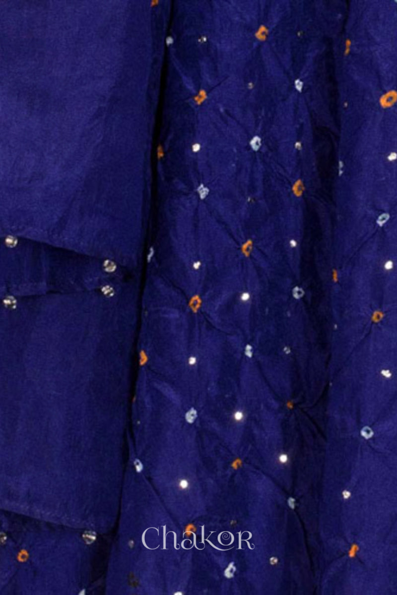 Navy Bandhani Mulberry Silk Dupatta