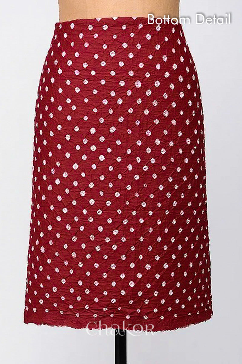 Handcrafted with traditional Indian bandhani technique and intricate hand embroidery, this piece is...