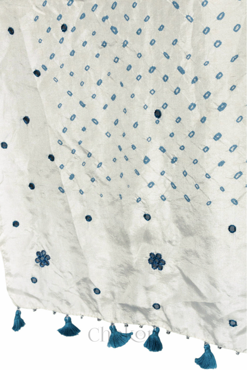Offwhite Bandhani Mulberry Silk Dupatta