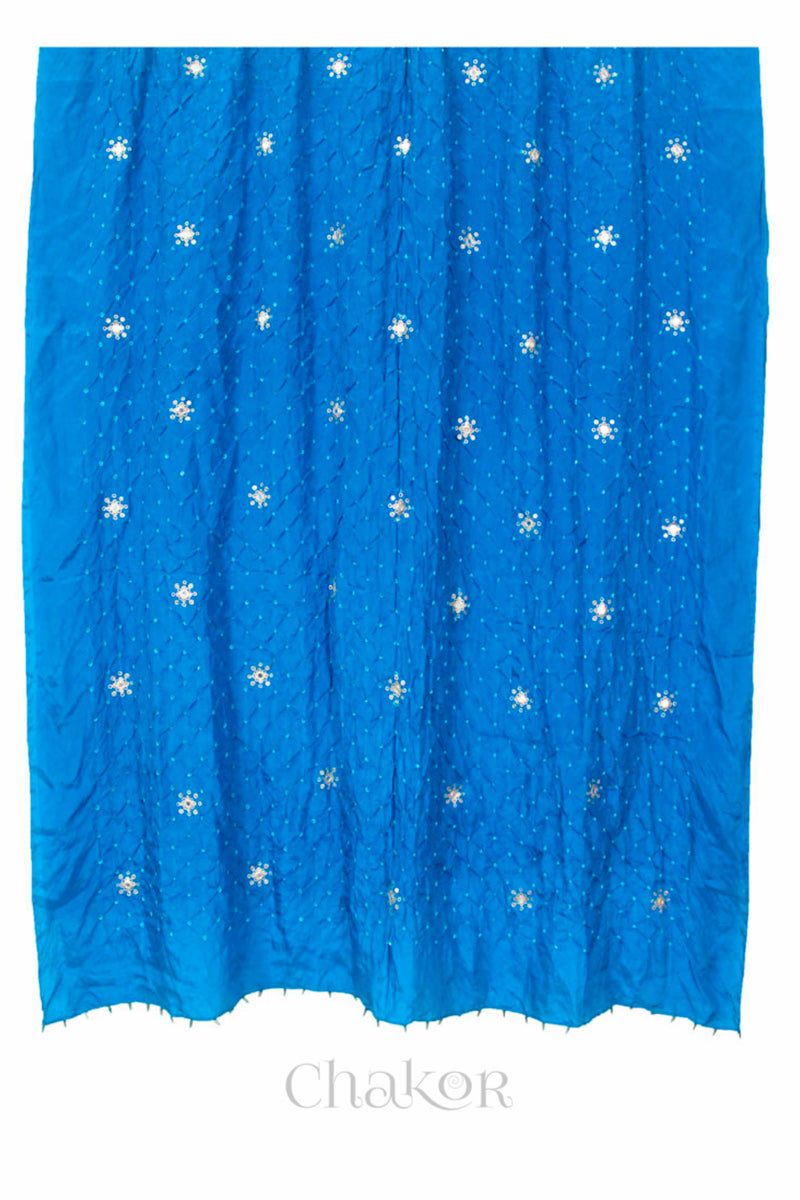 The ensemble is complemented with a Turquoise Bandhani Dupatta in finest mulberry silk.